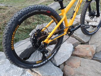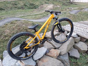 Po dlouhém hledání toho pravého kola pro našeho malého drtiče padla definitivní volba na lokální výrobu RB. V hledáčku byly kola RB K.I.D. 125 XC, Trek Wahoo 24 Trail, PELLS Rocket Trail 24 nebo Specialized Riprock 24. Požadavek pro „ježíška“ byl na odpruženou vidlicí, proto vybrán model AM s vlastním výběrem lakování. Rám je opravdu hezky zpracován, pouze mi bylo líto, že již není dodáván s původními plaketkami RD. Na kola jsem v rámci BOZP nahodil reflexní polepy v barvě kola.