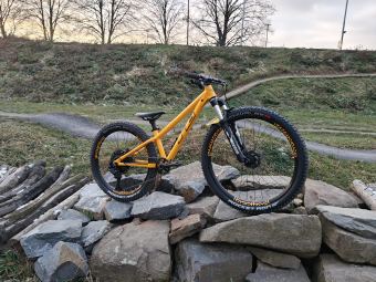 Odlehčení základního modelu proběhlo hlavně výměnou plášťů, provedení bezduší, výměnou sedlovky, sedla a řidítek za karbonové, lehčí kotouče a představec. Ještě v plánu nahození brzd Magura MT Trail Sport HC 1-finger, kliky CRUZbike 140mm a převodník GOLDIX 30T s ochranou řetězu. Uvidíme jaká bude finální váha, ale pod 11kg se bez výměny vidlice a kol dostanu jen těžko.