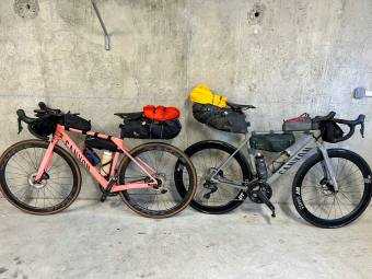 Vzhledem k teplotám jsme mohli oblečení ještě více zredukovat, ale netroufli jsme si a vezli i teplejší kousky. Brašny Acepac, na růžovce bylo třeba tu podsedlovou před vyjetím dotáhnout.