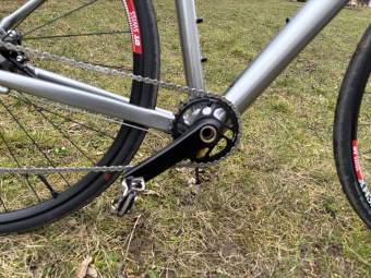 Stavba pro mladého (aktuálně měří 141 cm) na rámu kola, které na mě vykouklo v nabídce britského Merlin Cycles za neuvěřitelnou cenu. Z původního kola zůstala jen rámová sada s představcem, středovým a hlavovým složením. Spolu s kolem jsem si nechal z ostrovů poslat i kompaktní berany HUP šířky pouhých 34 cm.