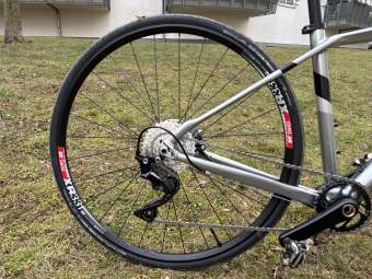 Specialitou jsou kola, která jsou o průměru 650b (rám je na 700c kola) a váží celkem 1396 g (bez bezduš. pásky a bez adaptéru předního kola z 15 na 12 mm, který má 16 g). Ráfky a náboje jsou bajkové, což je zejména u ráfků paradox, když si člověk uvědomí, že tenhle MTB ráfek s vnitřní šířkou 20 mm je dnes pro silničku možná až příliš úzký.