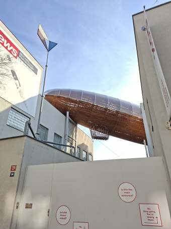 Následuje vzducholoď Guliver v DOXu.Bohužel otevírají až v 11, tak slespoň fotka z ulice.