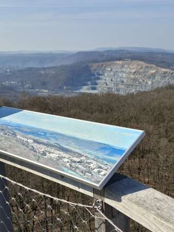 Pohled ze Zavisti na lom Baně na druhý břeh Vltavy.
