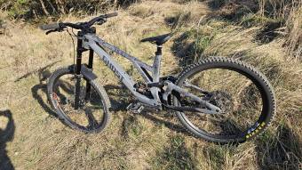 Tak po půlroce přemejšlení, zkoušení a ladění, jsem snad hotov. Největší neduh, a sice že to to kolo bylo málo šedý, jsem vyřešil pomocí ochraný fólie. Potom jsem vyměnil brzdy, protože ty původní byly stříbrný a dal jsem rovnou verzi evo. Tlumič EXT Arma v4 190mm. Vidle Boxxer ultimate 200mm. Řidítka +15 rise, představec +5, hlavko +5 reach. Výsledkem je, že zůstal ± zachován reach a zvýšil se stack o cca 20, něco přes 2cm wheelbase, hlava –0,7°, sedlová –0,8°. Jinak jsem teda nadmíru spokojen a kolo dělá přesně, co jsem od něj očekával. Kopec se na něm pomalu vyjet dá, takže neni problém dát odpoledne na trailech za barákem, nebo i celodení výlet typu blinduro. Nejlíp to ale samozřejmě funguju v rychlosti, čim rychlejc jedu, tim lepší z něj mám pocit.