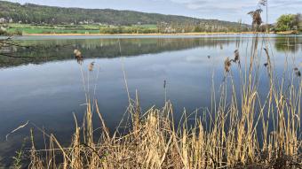 Emauzský rybník, kam za války spadnul Messerschmitt.