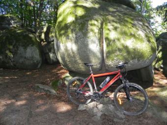 Hmm, tak souřadnice to tady nebere. Takže v České Kanadě když se jede z Nového Světa na Terezín, tak se odbočí vpravo po zelený a po asi 1200m (zatáčka vlevo) je pěšina vpravo přes pole do lesíka, z cesty jsou viděl oplocené kameny, to je vedle