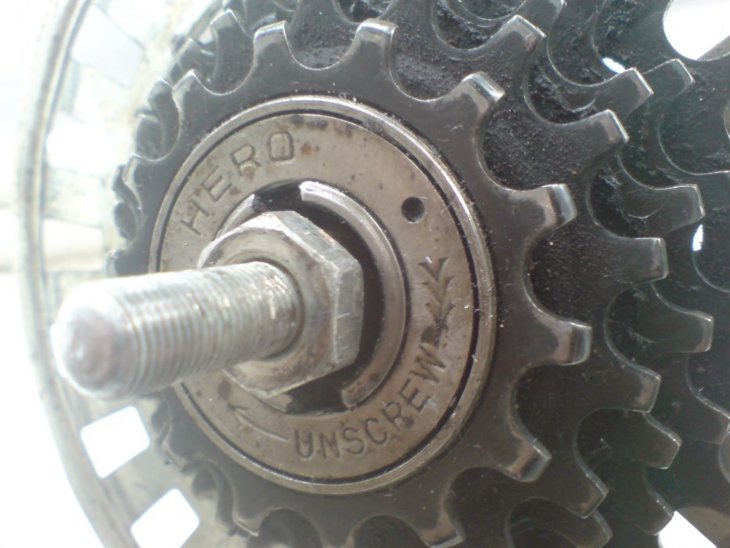 dovede to byt tak utazeny, ze urves ozuby stahovaku :( pak nezbyva, nez rozebrat (dulcik + kladivo za ty dirky v konusu, bacha ma levy zavit) a za to, co zustane na naboji to chytit do sveraku za osazeni zapadek (jsou dve proti sobe)